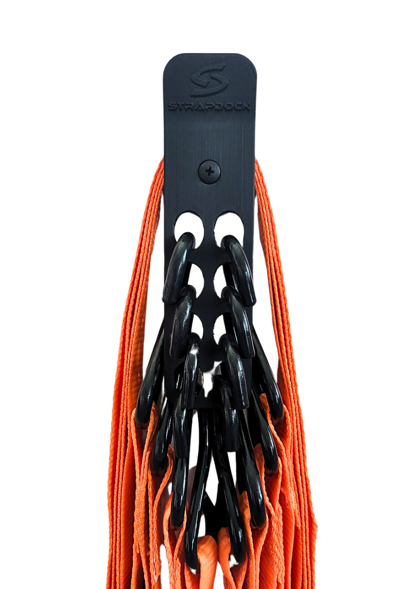 STRAP MANAGEMENTSTARTS HERE Tired of wasting your time dealing with tangled equipment? Organize your straps, bungees, or anything with a hook. Hook Rail StrapDock
